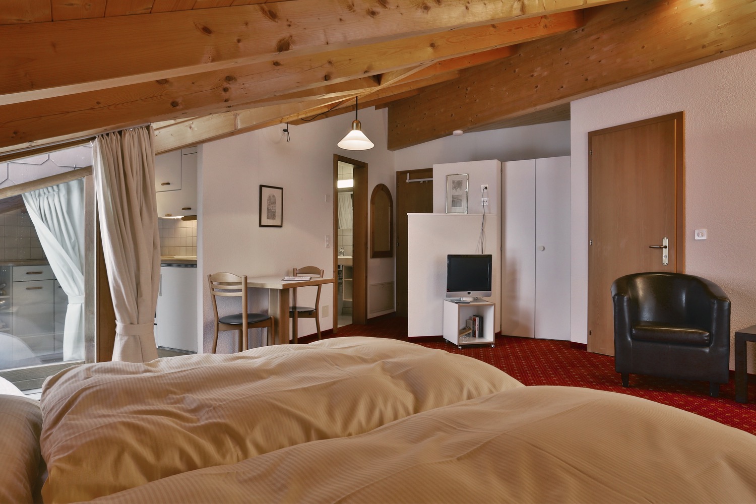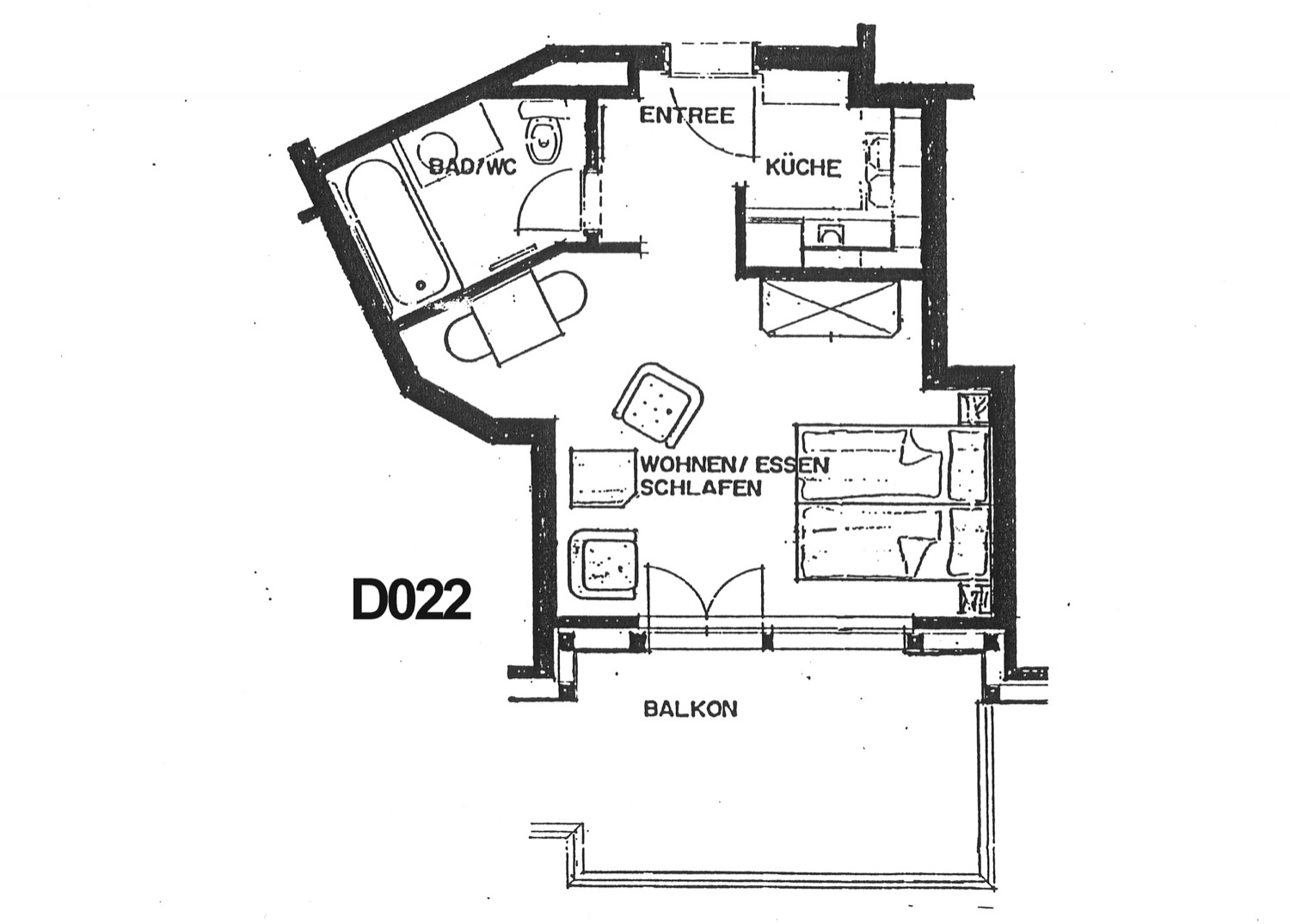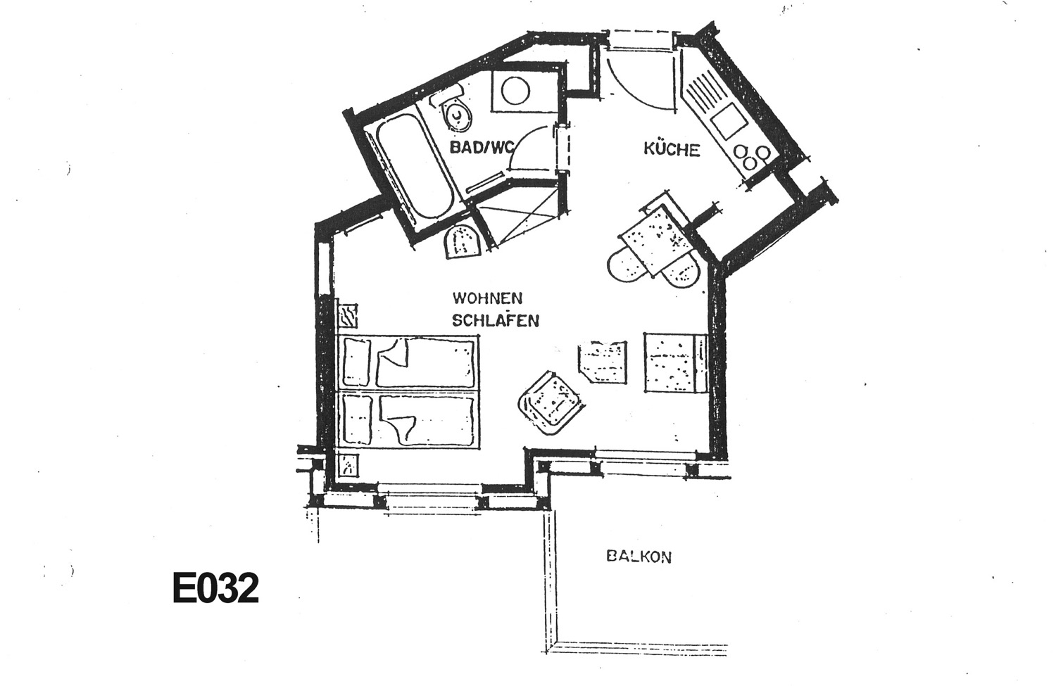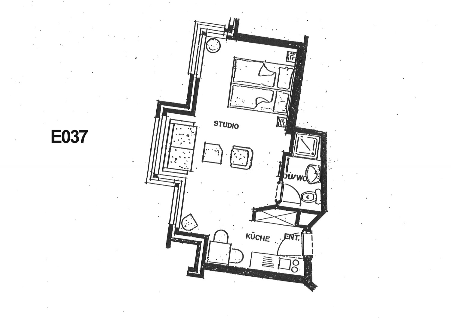 Unsere Wohnungen mit 1 Zimmer bieten Platz für 2 Personen. Wir bieten insgesamt 5 Wohnungen dieses Typs an. In der Galerie können Sie sich alle Wohnungen mitsamt Grundriss und Beschrieb ansehen.