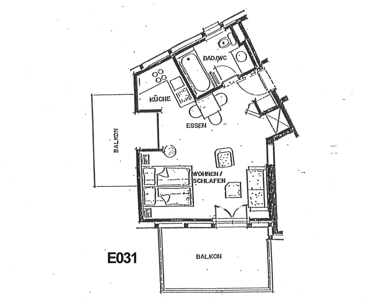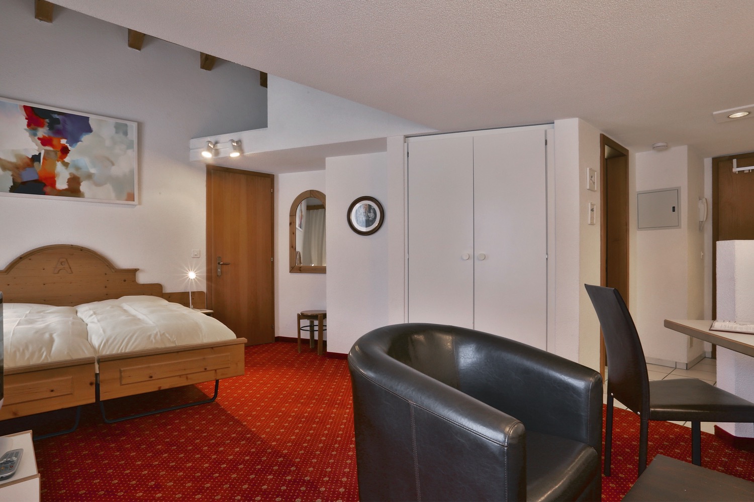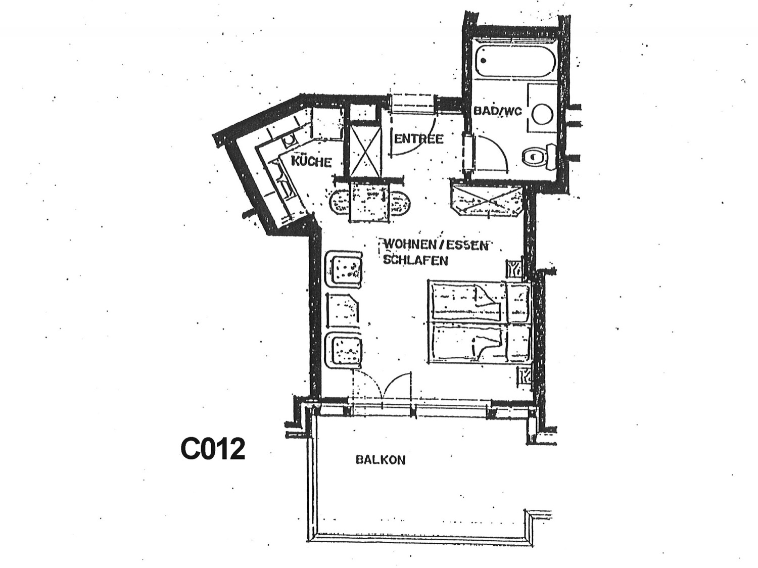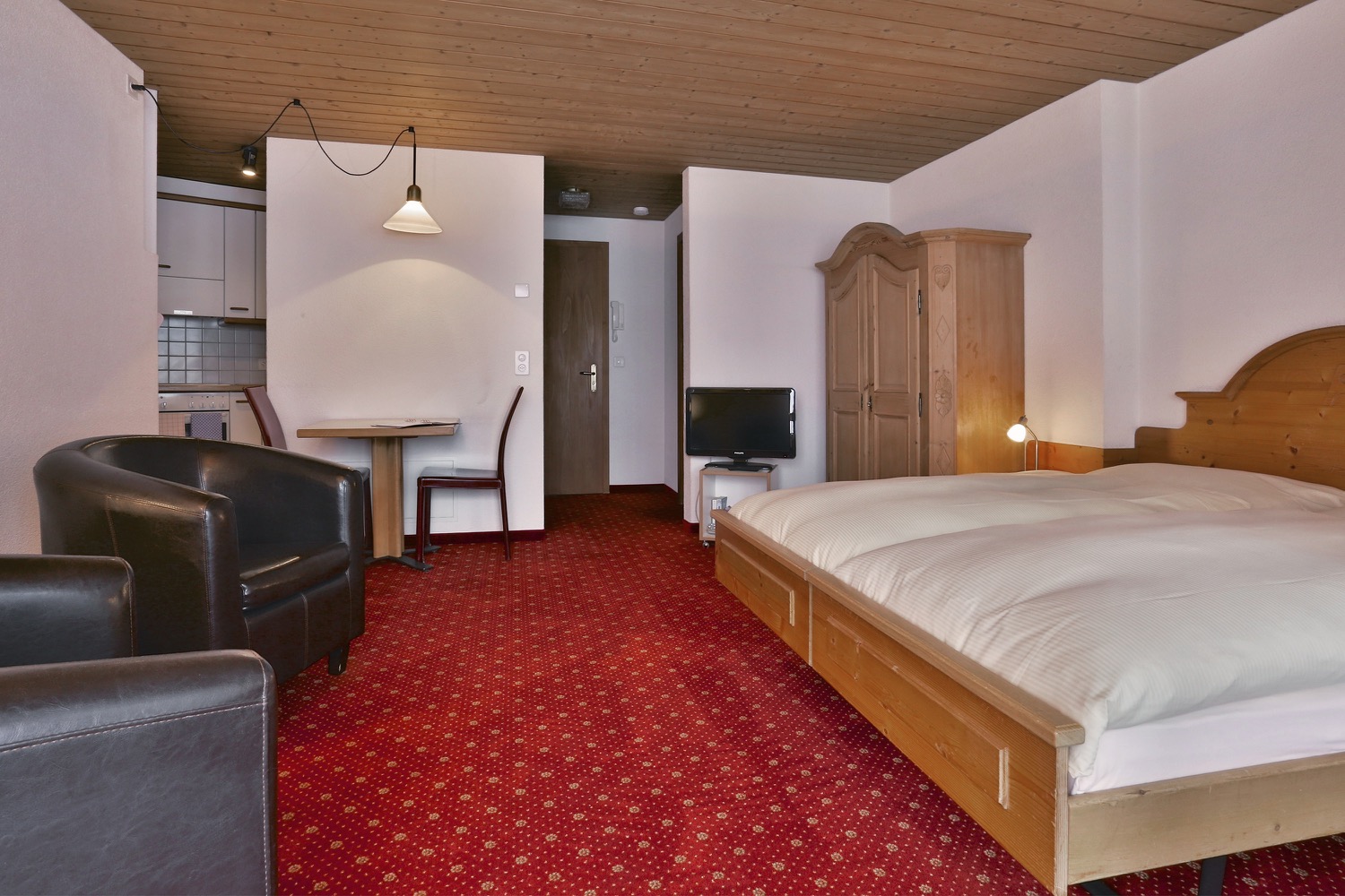 Unsere Wohnungen mit 1 Zimmer bieten Platz für 2 Personen. Wir bieten insgesamt 5 Wohnungen dieses Typs an. In der Galerie können Sie sich alle Wohnungen mitsamt Grundriss und Beschrieb ansehen.
