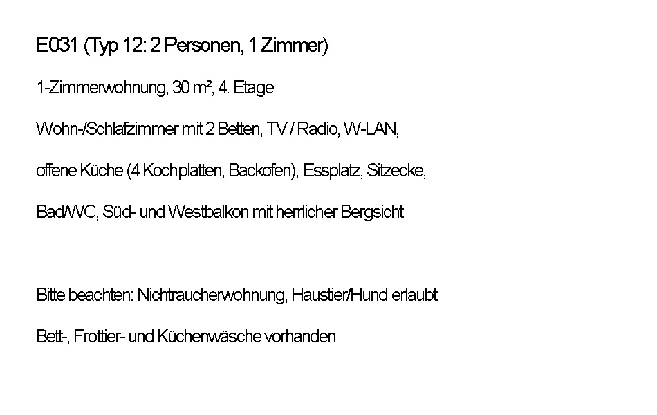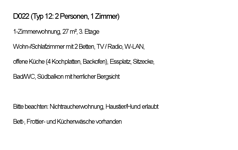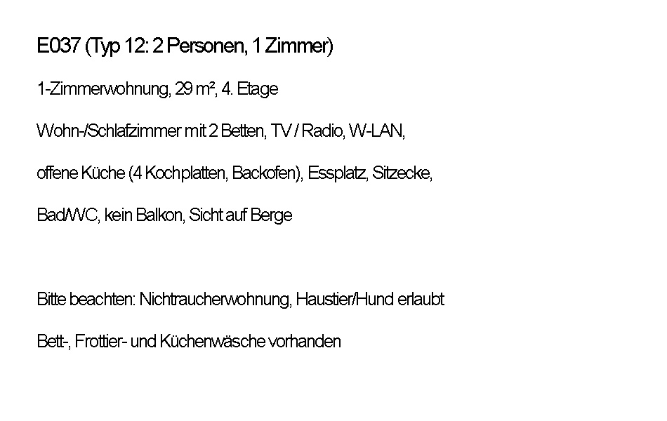 Typ 12: Ferienwohnung für 2 Personen (1 Zimmer)