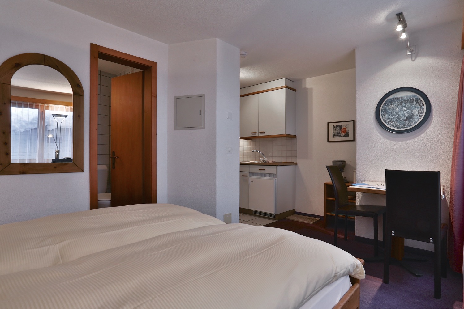 Unsere Studios bieten Platz für 2 Personen. Wir vermieten insgesamt 5 Wohnungen dieses Typs. In der Galerie können Sie sich alle Studios mitsamt Grundriss und Beschrieb ansehen.